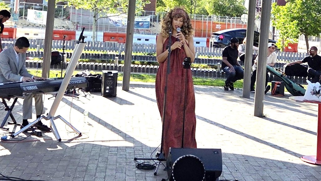Here’s a photo from last Friday Night Live – Jazz at Eastern Market Metro Plaza featuring Imani-Grace Cooper.