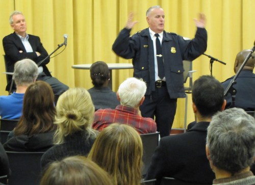 The meeting was hosted by Councilmember Tommy Wells, who characterized the rash of muggings as “trending crime.” Wells said that a commonly heard refrain is that crime is an expectation that goes with living in the city. Wells’ said, “[m]y expectation is zero crime – no matter what neighborhood you live in.”