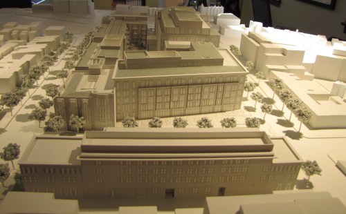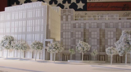 Yesterday, the Historic Preservation Review Board voted 5 – 3 to advance the Hine Project, but not without some board members expressing serious reservations about the design of the southern façade of the Pennsylvania Avenue Office Building, the design of the north façade of the North Residential Building, the plaza’s water feature, and the connection between the residential and office buildings facing Pennsylvania Avenue.  One board member recommended taking “at least one floor” off of the 7th and Pennsylvania Avenue Office Building.