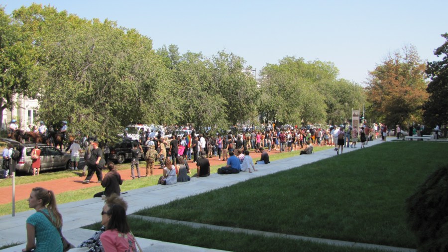 Nazis lost in the crowd in front of Folger Theater