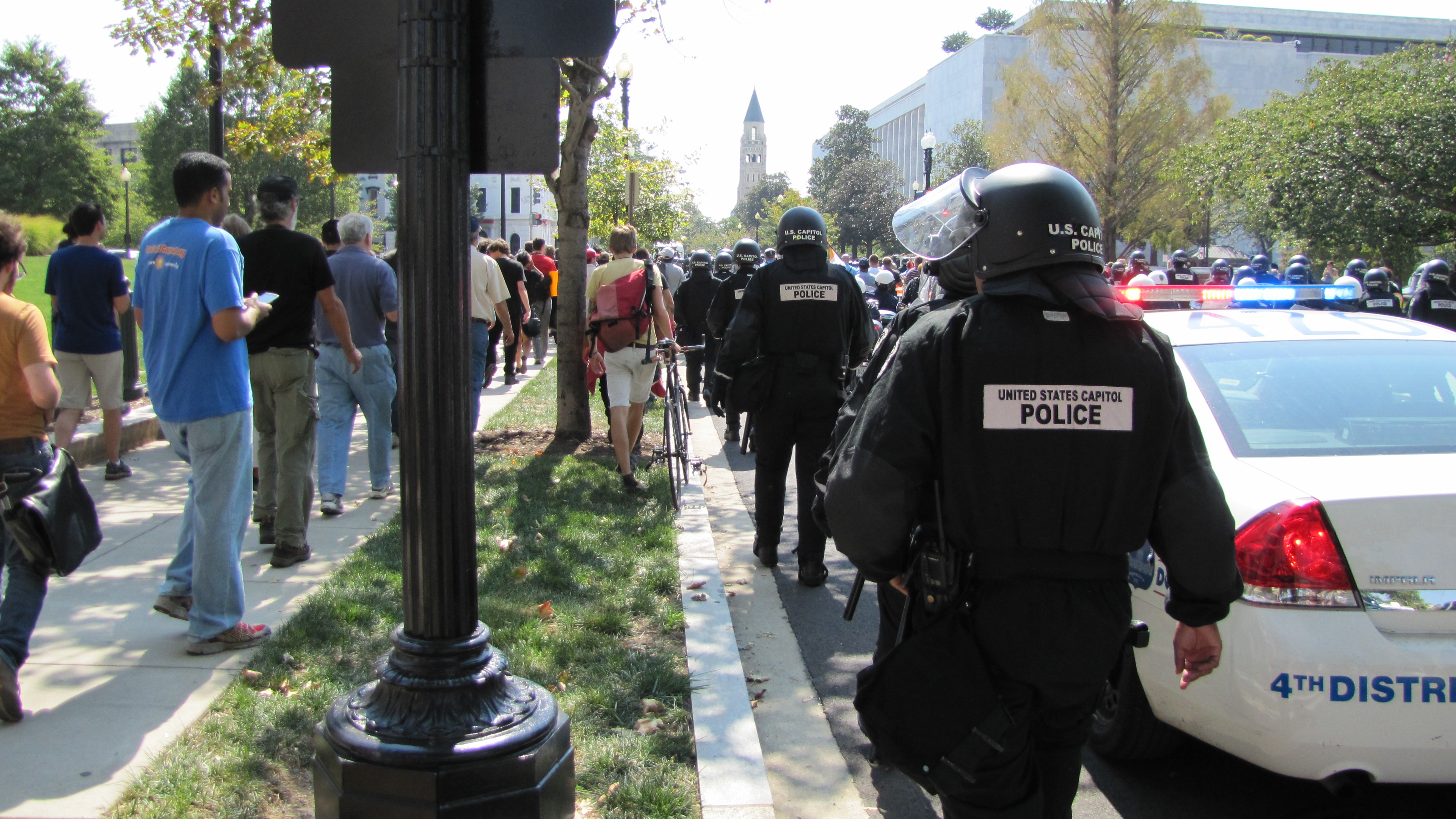 US Capitol Police in riot gear joined Metropolitan Police at 2nd an East Capitol where the march turned south to Pennsylvania Avenue before continuing around the Capitol