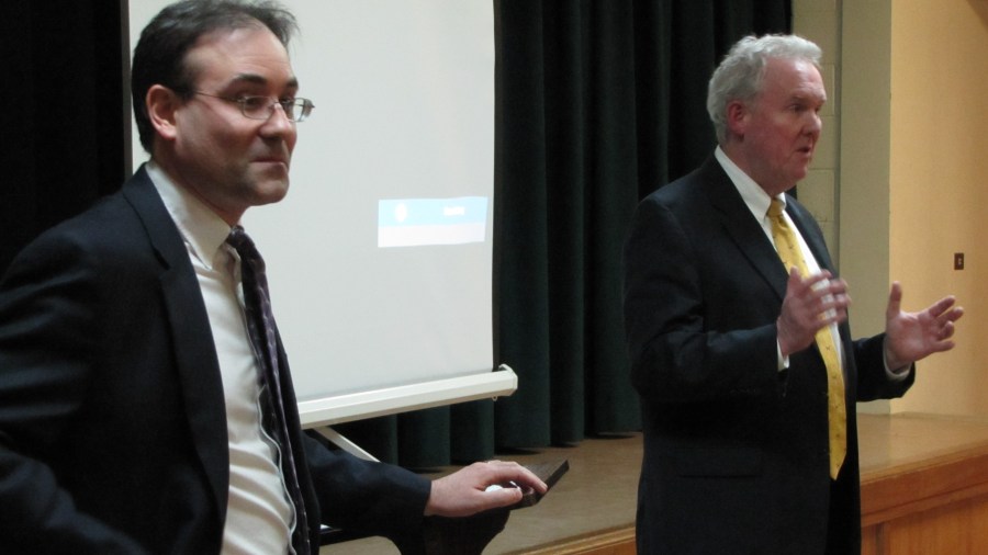 Steve Ours, (left), Chief, Permitting Branch, Air Quality Division, DC DOE and Councilmember Tommy Wells at Thursday Night’s Meeting on the Capitol Power Plant