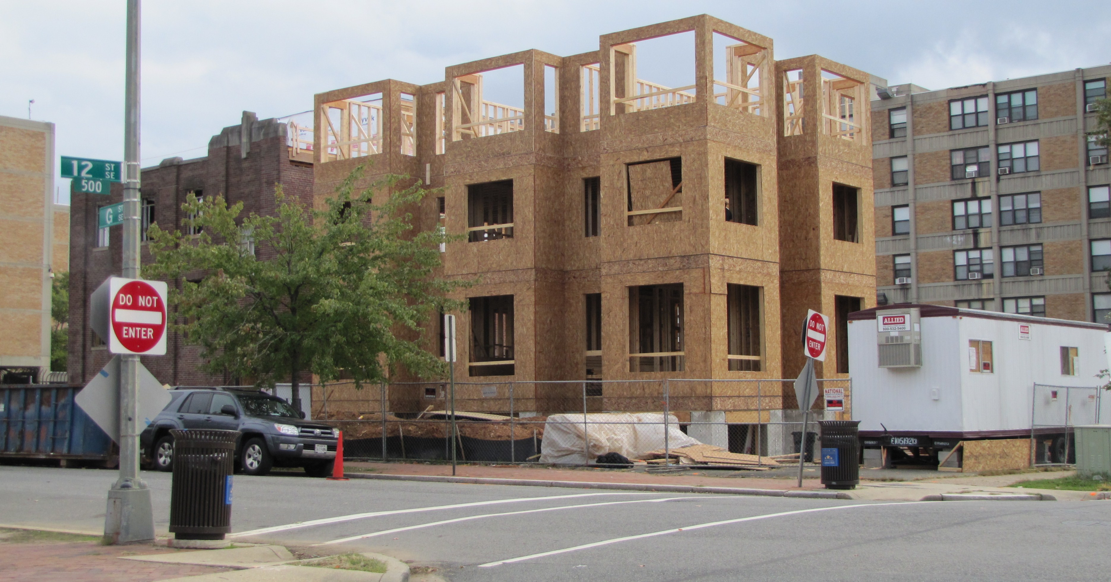 Progress on the condo project on the site of the former Salvation Army building at 12th and G Streets, SE.