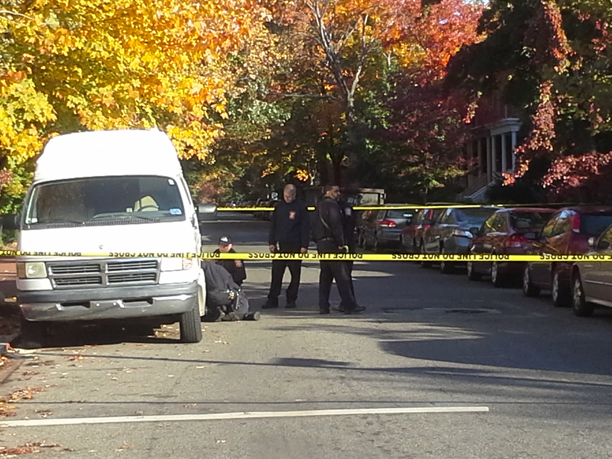 At 9:45am Saturday morning, DC Fire and Hazmat Units blocked the intersection of 9th and C Streets, SE, while officials appeared to inspect the underside of a white van.