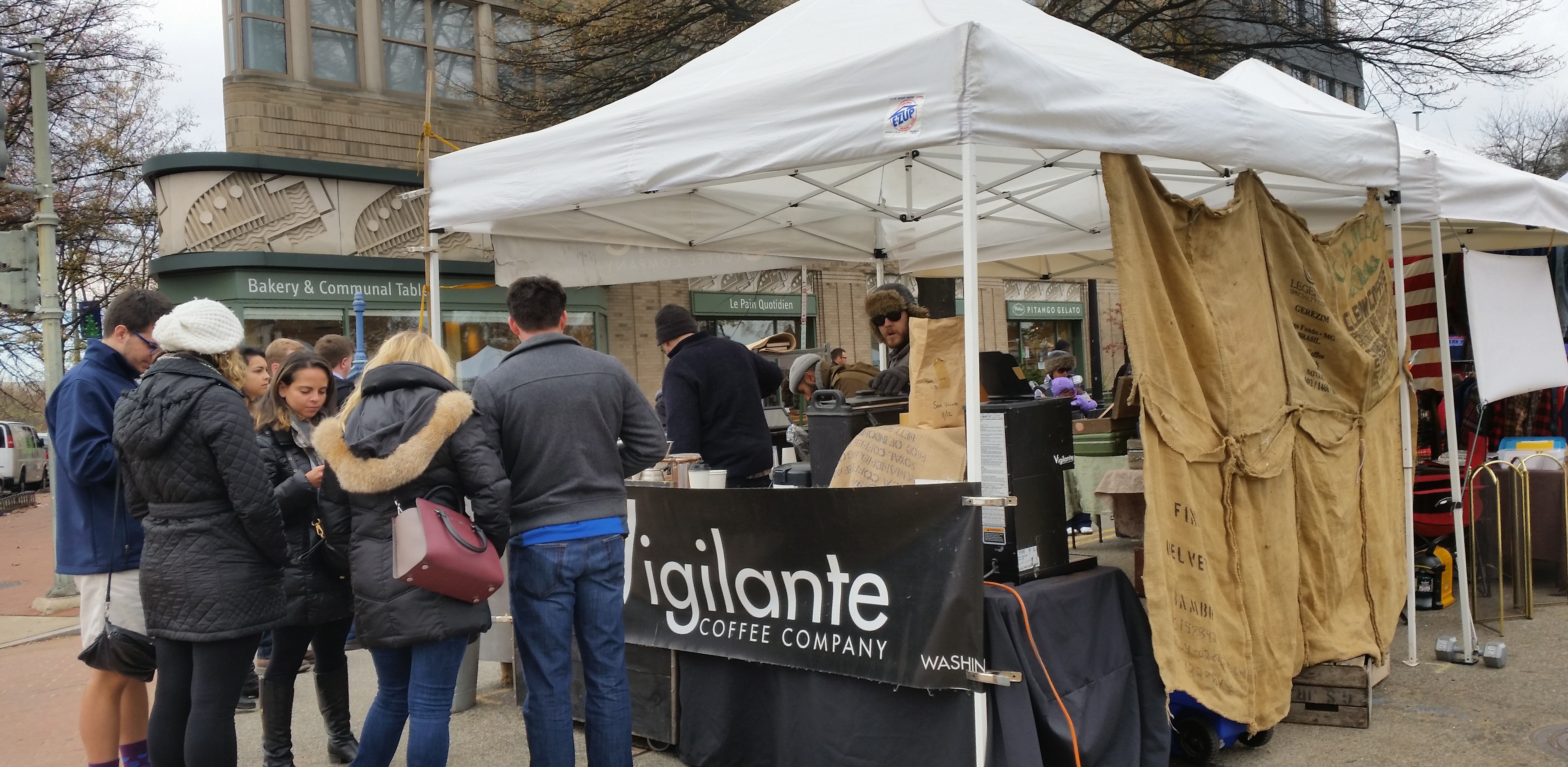 Trouble Brewing? Food and drink outlets on the the 600 block of 7th Street, SE, are grumbling about loss of business to the Eastern Market weekend flea market vendors.