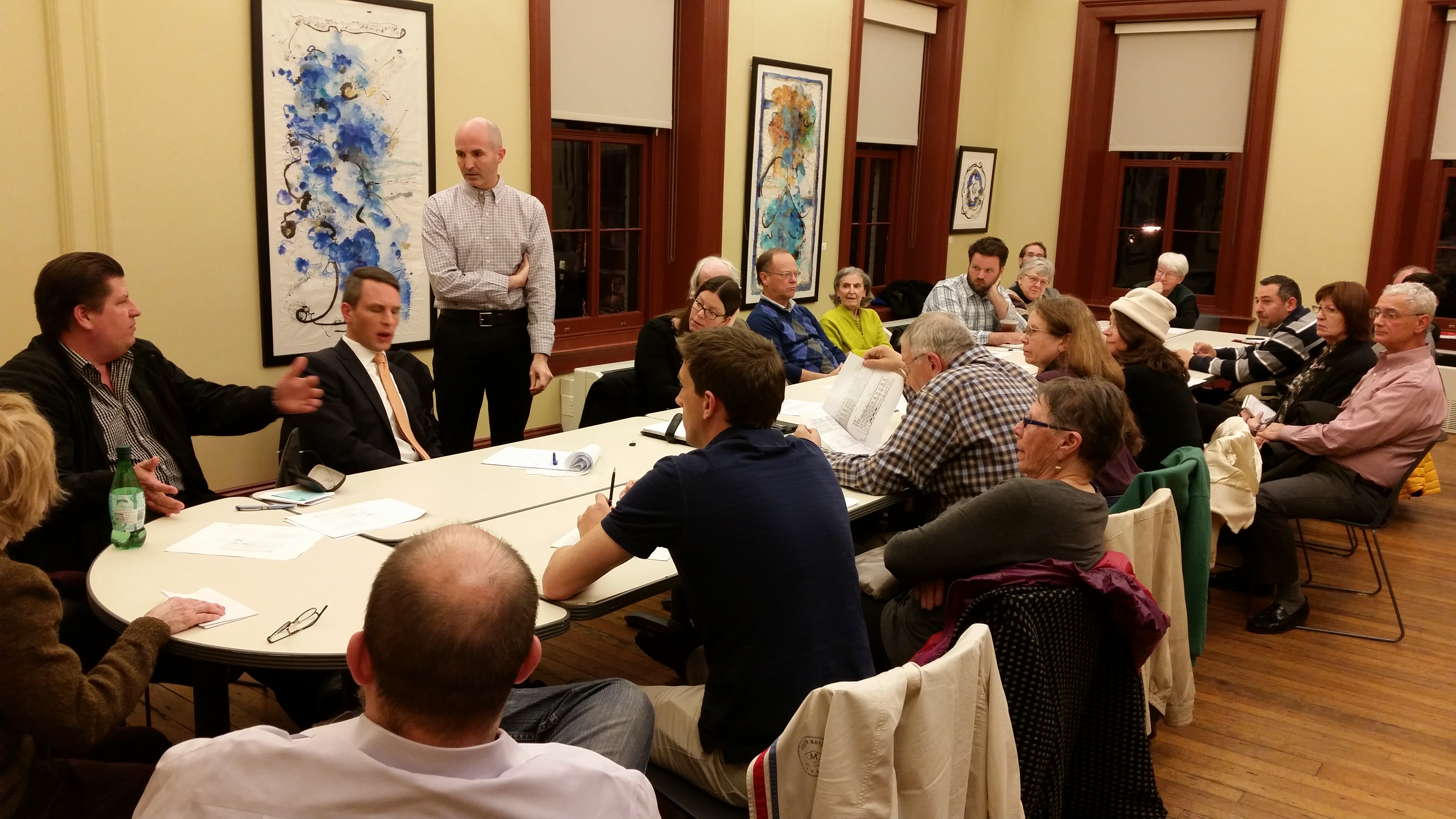 New details of the project emerged during the meeting. The project anticipates 46 units – most will be three and four bedroom townhouses – which will be for sale, not rentals. The developer said some of the units would be multi-family, two over two, and there could be 8 of those units. Under inclusionary zoning, 10 percent of the units will have to be “affordable”– some at 80% of Average Median Income (AMI) and some at 50% AMI. Since the plans have not been finalized, the developer could not give an exact number (for more on “affordable” see CHC posting here: http://bit.ly/1FT5TCb). There will be 46 below grade parking spaces, one per unit.