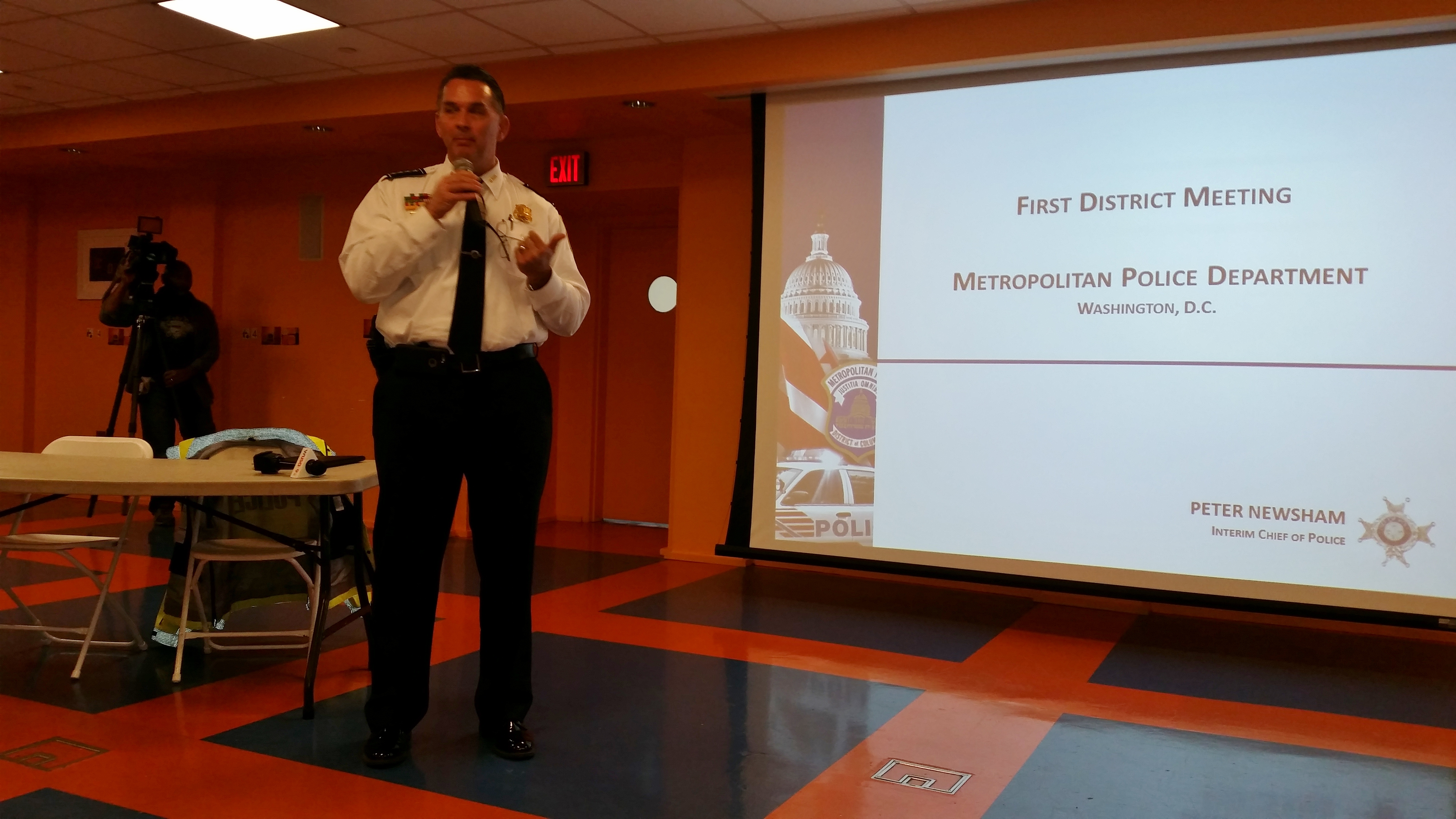In response, Newsham tried to reassure residents. He gave a PowerPoint presentation with statistics indicating a substantial drop in violent crime in the First District this year through November compared to the same period during 2015. He said that the number one thing the community can do is to continue to work with police: for its part, the MPD has increased the number of patrols and special units in Capitol Hill with a focus of getting illegal guns off the streets. He cited four recent gun arrests and four gun recoveries.