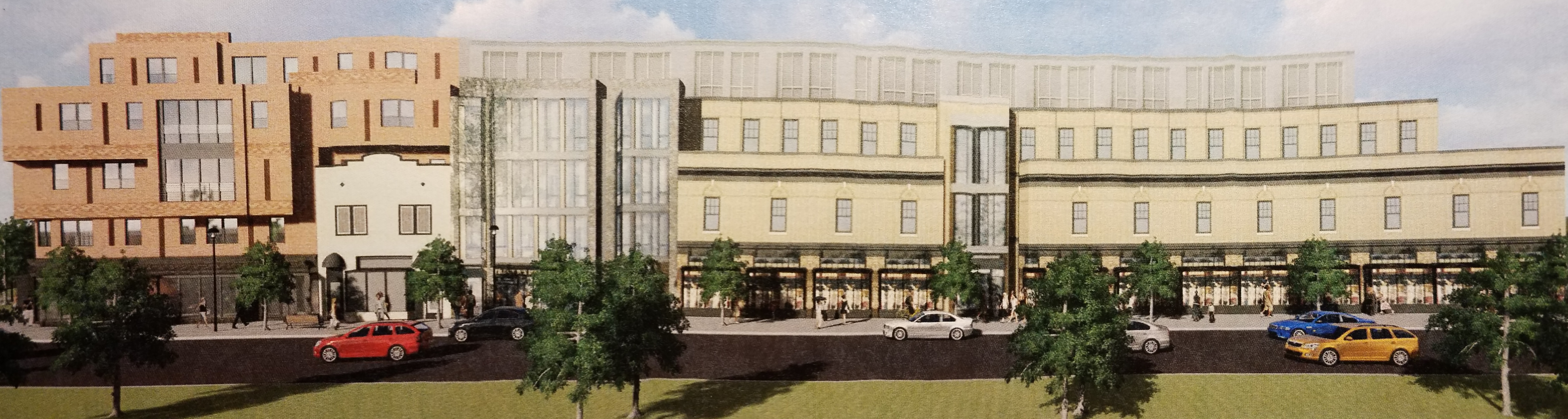 Early concept for residential/retail development at 12th and Pennsylvania Avenue, SE. The white portion is a historical structure incorporated into the new development.