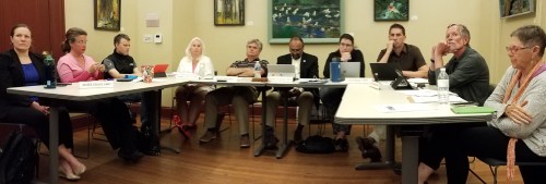 and ANC6B commissioners listen to (and listened to) residents. Left to right: Aimee Grace, Denise Krepp, Daniel Ridge, Jennifer Samolyk, James Loots, Chander Jayaraman, Diane Hoskins, Nick Burger, Steve Hagedorn, and Kirsten Oldenburg
