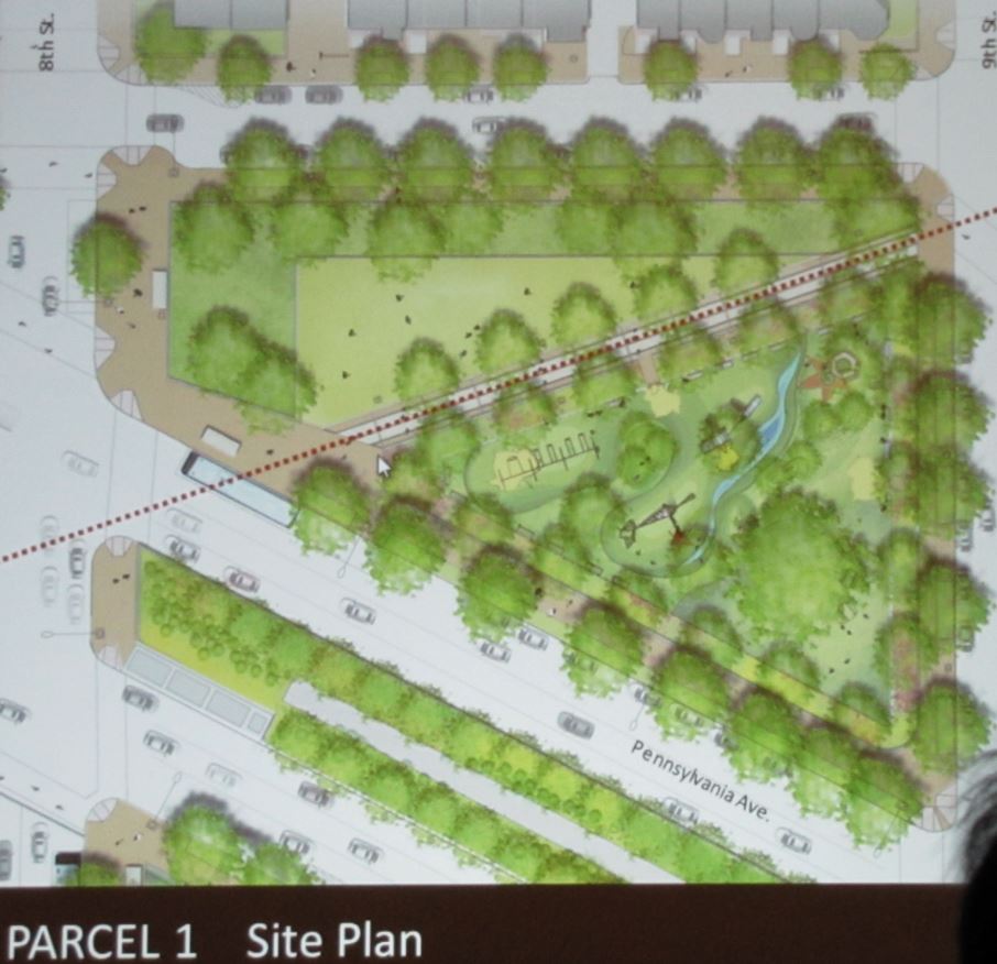 DeLorenzo said that the first year will be for design and planning and the second year for construction. DGS expects the project to be completed in 2020. The Department of Parks and Recreation is working with Barracks Row Main Street to install playground equipment in the park over the summer from a community benefit from the Hine project, part of community compensation for the increase in mass and density required for the project. That equipment will be incorporated into the redesign as it progresses.