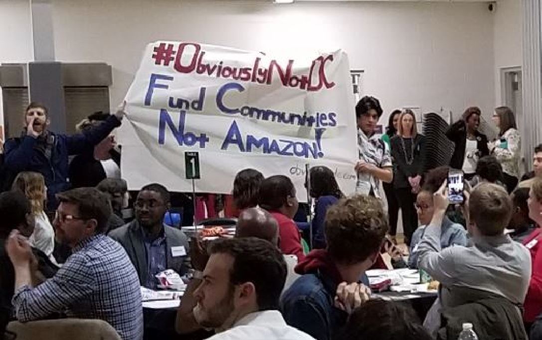 Amazon Protesters Disrupt Mayor’s Watkins School Budget Forum