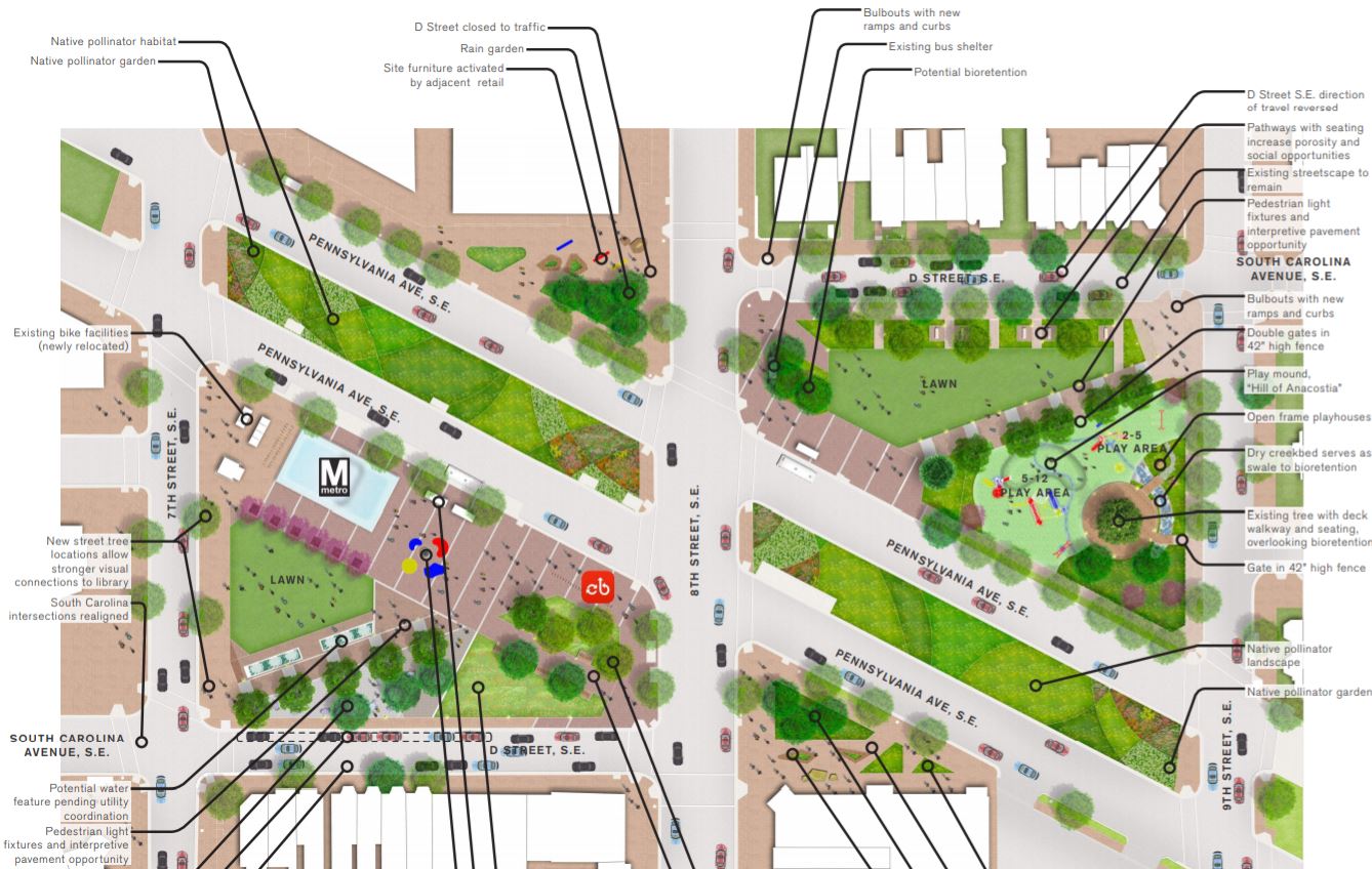 Schematic of the refined master plan for the redevelopment of the Eastern Market Metro Park.