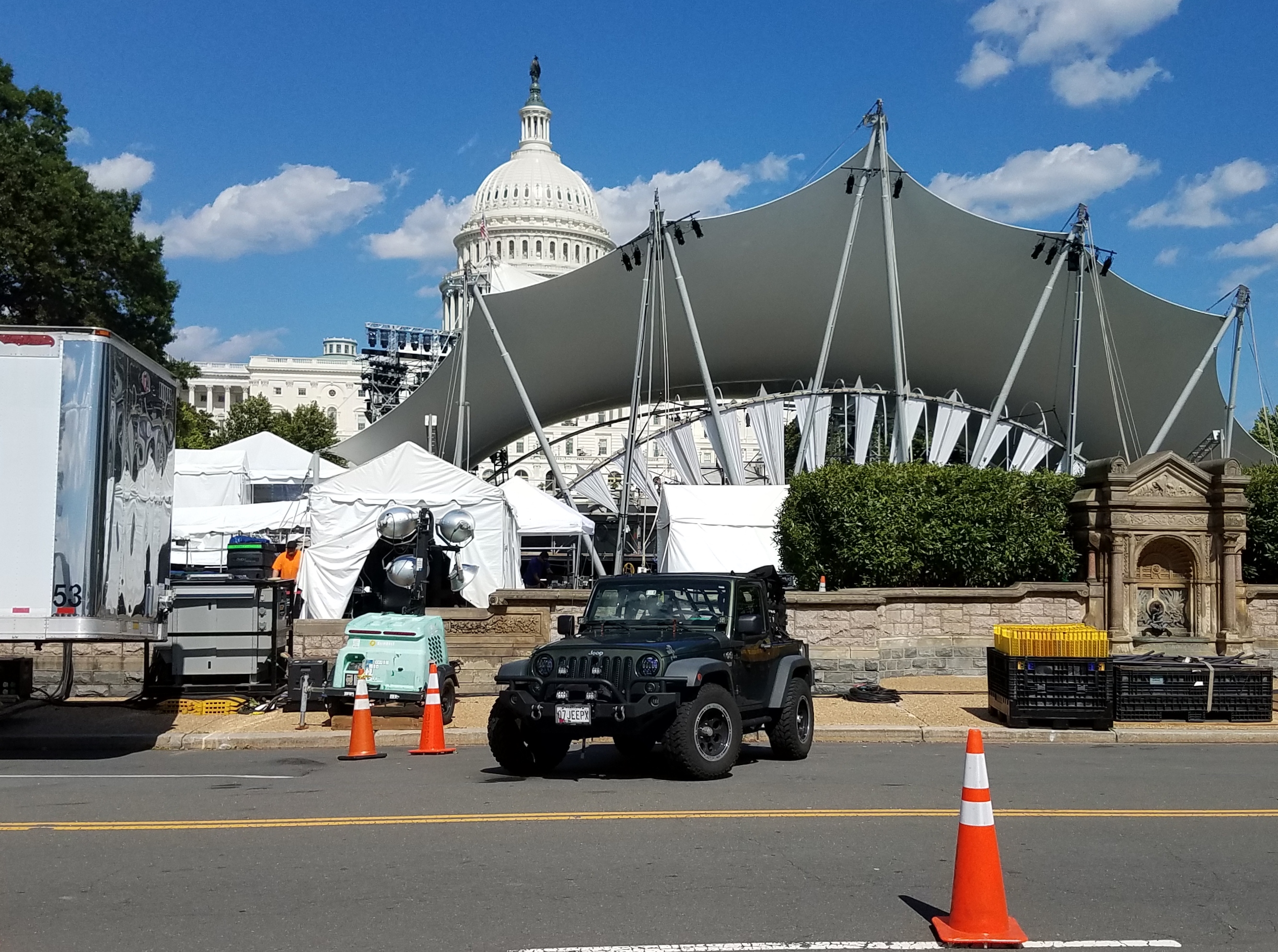 Here’s a backstage look at the performance venue on the West Front of the U.S. Capitol for the traditional July 4th Concert. Photo, circa 4:00pm, Sunday, June 30.