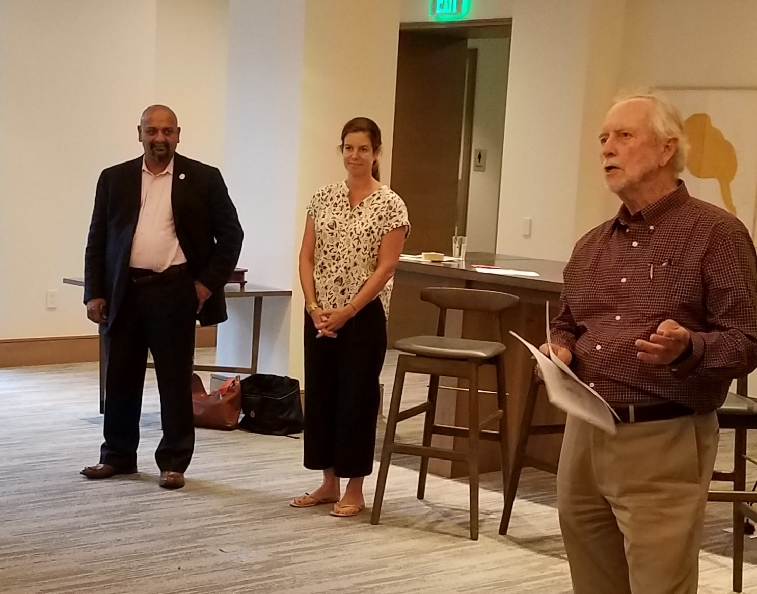 ANC6B Commissioner Jerry Stoufe at right introduces entrepreneur Hollis Silverman at last Thursday’s community meeting. At left is ANC6B Chair Chander Jayaraman.