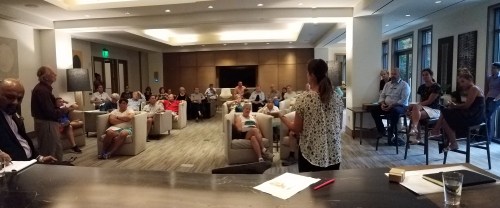Some 40 resident turned out to hear about the new restaurant coming to the Hine project. Click to enlarge.