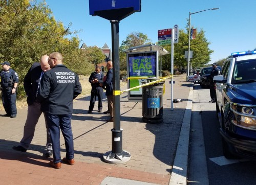 A circa 2:20pm, passing by the location of the arrest, police had put yellow crime scene tape around the area where the arrest had taken place.  A homicide detective was among the officers who were on the scene.