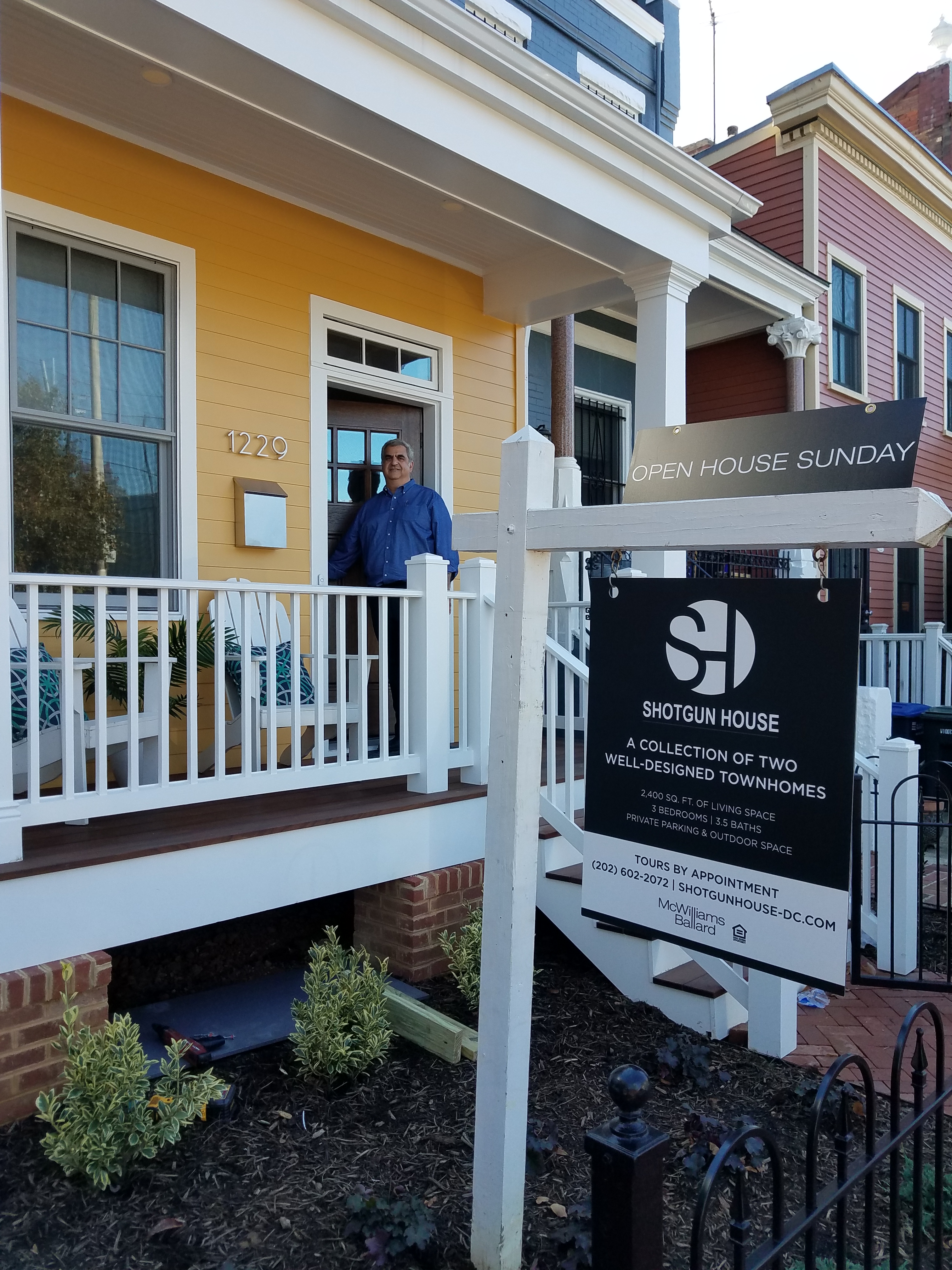 Gharai built two homes on the site.  He built a new shotgun house at 1229 E Street three feet west of the original shotgun house and a second house at 1231 E Street on the east side of the shotgun house.  The third floor of the shotgun house extends over the new house to the east, while the below grade level of that house extends under the shotgun house – technically making it two condos.