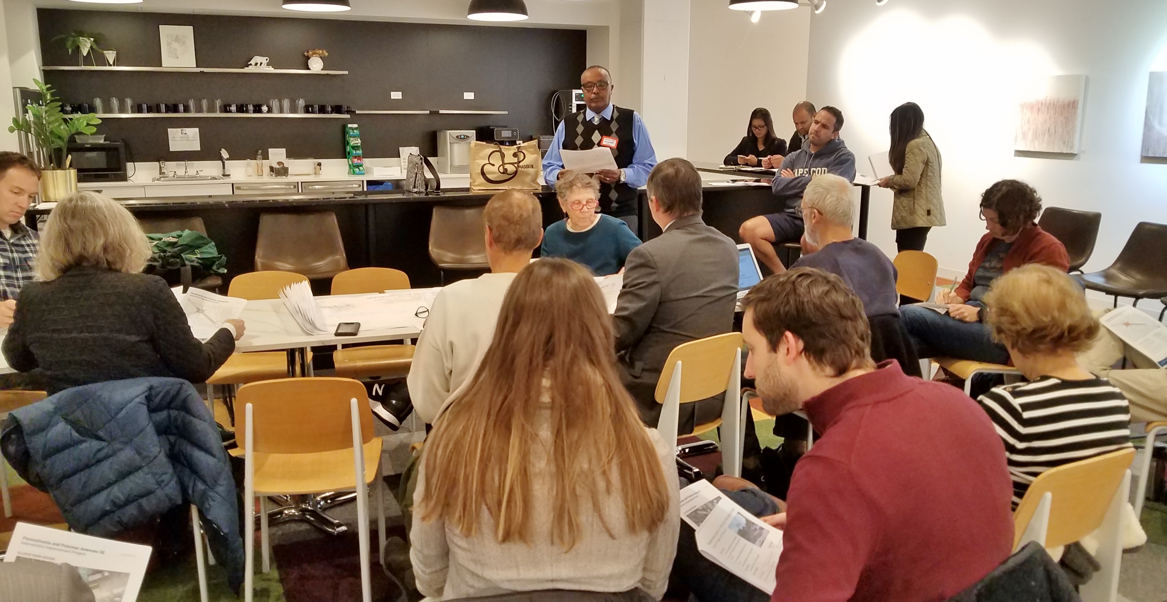 Last Wednesday, Abdullahi Mohamed, DDOT Project Manager for the Pennsylvania Avenue SE Lighting Project (standing, center), told ANC6B’s Transportation Committee that the Project is scheduled to start in mid-2020 and continue for 18 months. The re-do includes ADA compliant lighting to enhance pedestrian safety and adding historic globe lighting fixtures as well as upgrading or replacing existing lighting fixtures. The Committee is chaired by Commissioner Kirsten Oldenburg, seated in front of Mohamed.