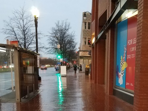 Frager’s, mixed use retail/residential – project finished. Units are being sold. Frager’s Hardware is open and Emilie’s restaurant occupies the prime corner ground level retail space. View from 12th and Pennsylvania Avenue. looking Southeast, February 24. Click to enlarge.
