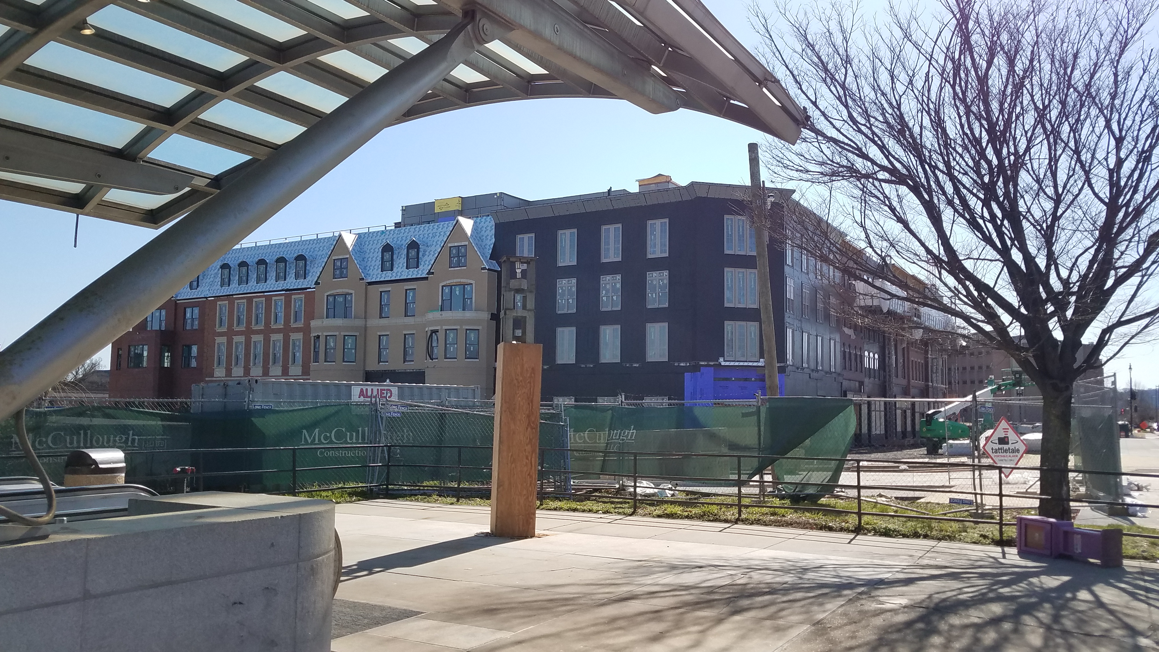 The first of two mixed use projects is underway on Reservation 13. View from 19th Street near the south entrance to the Stadium Armory Metro canopy, looking Southeast, February 23.