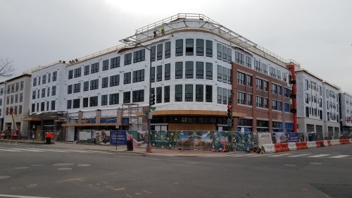 Reservation 13 – Two parcels are being developed. The larger south building is under construction as shown in the previous photo; work on the smaller north building will begin soon, under a phased development plan. The total number of apartments in the two buildings is 353 – 262 in the south building and 91 in the north building. Originally, it was intended that 106 of the units in the project would be designated affordable. Last fall, DC city agencies announced that the smaller north building will be 100% “deeply affordable” units for those with 0% – 30% of Area Median Income. It is unclear if the new designation will affect the number of affordable units in the larger south building. In addition, the project will provide 22,000 s.f. of retail.
