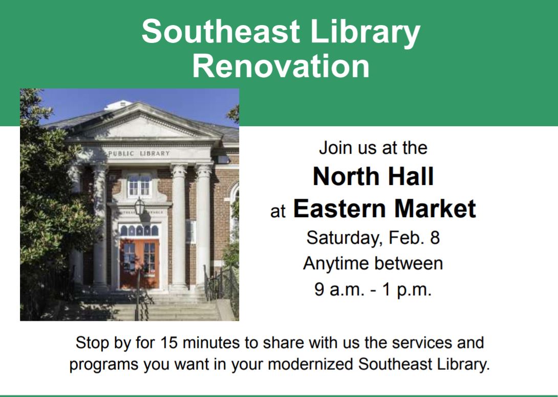 Reminder: The opportunity to take the survey to provide community input on the future of Eastern Market ends soon – possibly this week. Here’s the link to the survey: https://www.easternmarketplan.org/