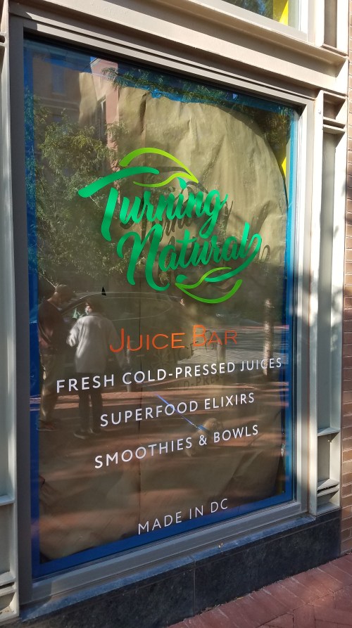 Turning Natural Juice Bar will open a new outlet at 750 C Street, SE, close to Eastern Market. Here’s a link to their menu: https://www.turningnatural.com/store-menu