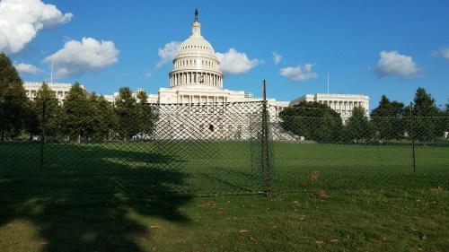Come Tuesday, the West Front of the US Capitol between this double fence and the Capitol Building will be closed to the public – US Capitol Police officers say it’s owing to construction of the Inaugural platform.