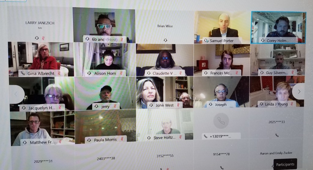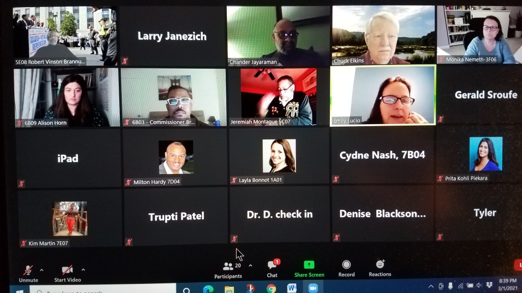 The City Wide ANC Caucus – coordinated by former ANC6B Chair Chander Jayaraman – met last Monday. Commissioners expressed interest in finding ways that the city’s 300 ANC commissioners can assist the administration in the roll out of programs. One suggestion was to help coordinate Covid 19 vaccine distribution. Tyler Williams, Director of Operations for the Mayor’s Office on Community Relations, was present and offered to liaison the Caucus and “Senior Leadership”. The Caucus in laying plans to hold a virtual COVID 19 Vaccine Hesitancy Town Hall Meeting to encourage vaccination.