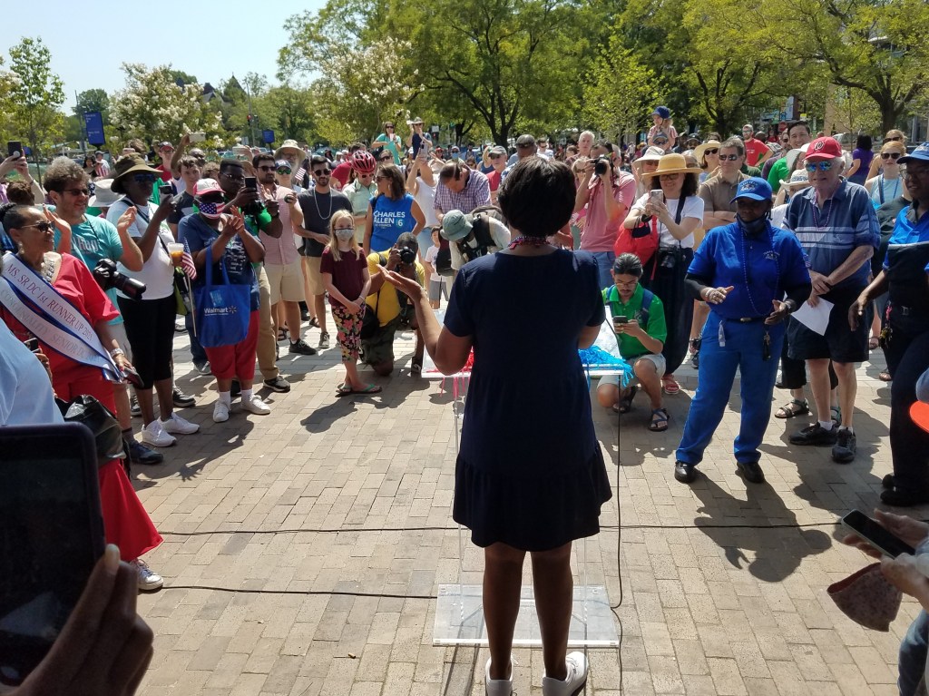 Mayor Bowser was all smiles as she received the applause and cheers of onlookers grateful for the parade, for the holiday, and grateful for the words of the Mayor, “DC Is Open”.