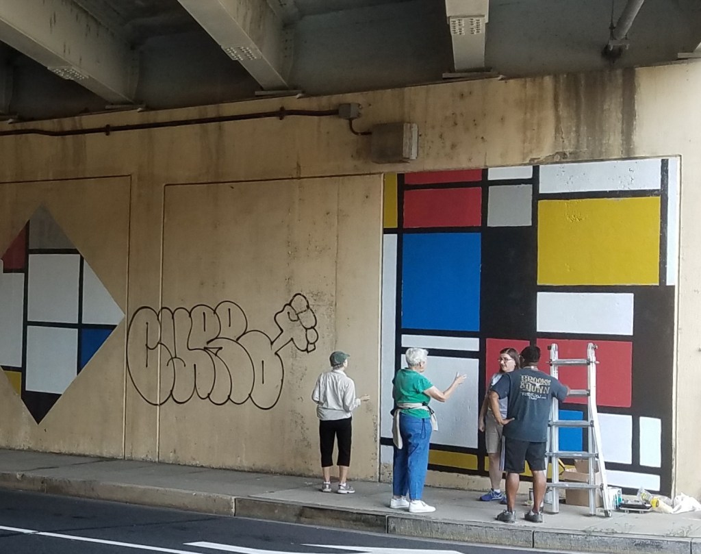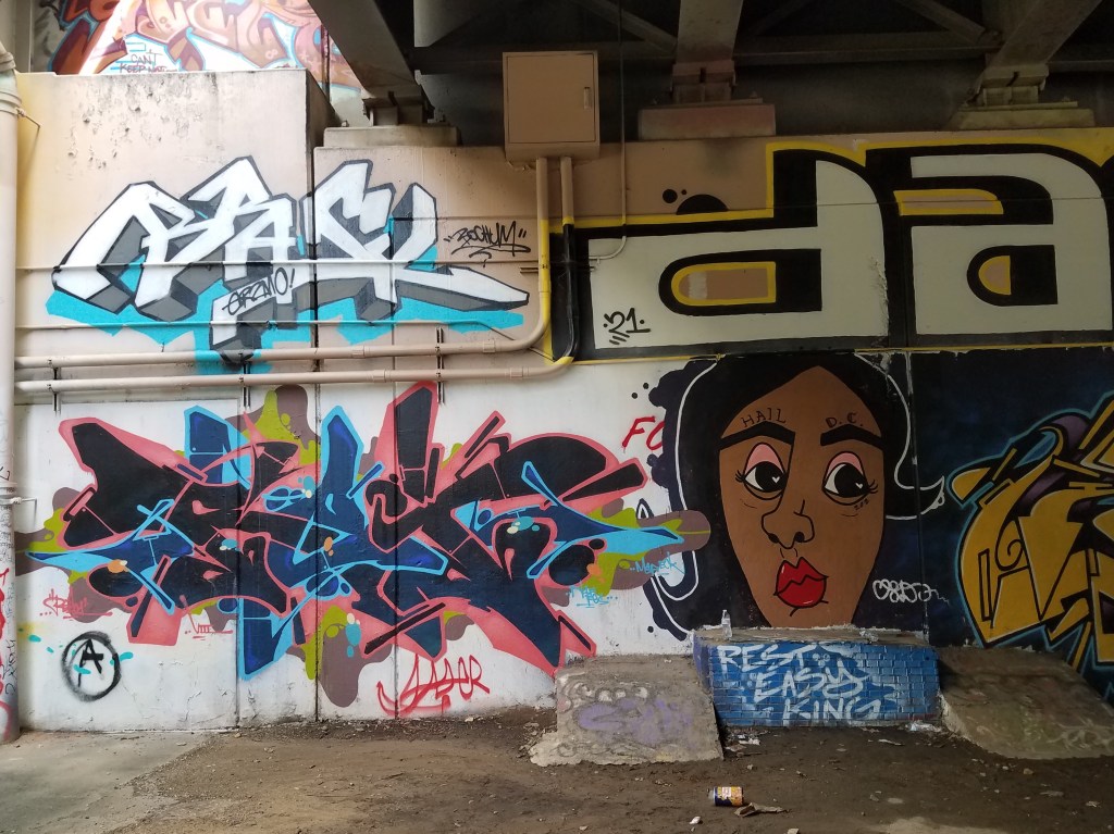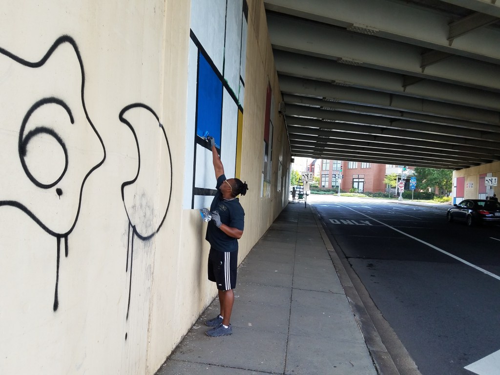 The series of murals promoting DC Statehood near the corner of 8th Street and Virginia Avenue, SE, having reached the end of their year-long run, are being replaced. MuralsDC – the DC Department of Public Works Graffiti Prevention Initiative – has commissioned a series of new murals for the site which will reflect the themes of unity and community featuring local references – landscape features and architecture. http://muralsdcproject.com/