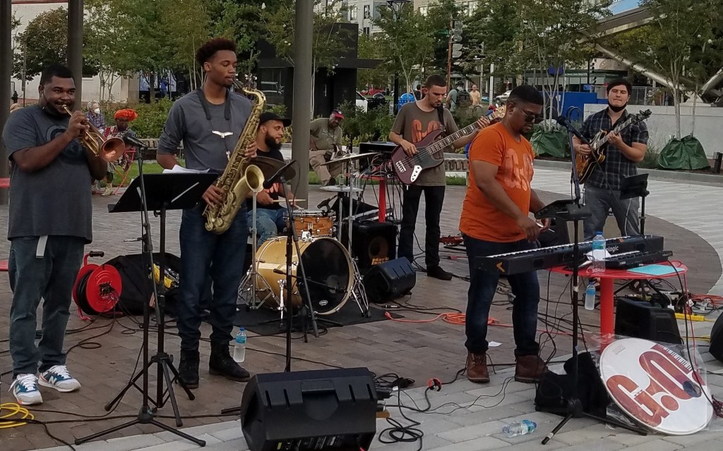 Jazz artists Samuel Prather & The GO perform at Friday Night Live Jazz last Friday evening at Eastern Market Metro Plaza to an audience of some 100 community members. The programming was made possible through funding obtained by CM Charles Allen to activate and draw people to the Plaza – and a place to walk to, not just a place to walk through.