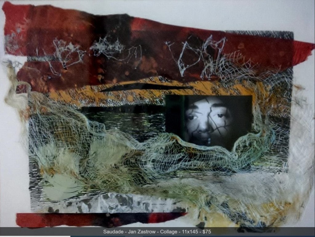 It’s worth thinking about the definition of memory when viewing this show: “The faculty by which the mind stores and remembers information” – “something remembered from the past; a recollection.” These pieces reflect sometimes one, sometimes the other, sometimes both. I had to look up the definition of saudade – the title of Jan Zastrow’s piece: “a deep emotional state of nostalgic or profound melancholic longing for something or someone that one cares for and/or loves. Moreover, it often carries a repressed knowledge that the object of longing might never be had again.” Wiki
