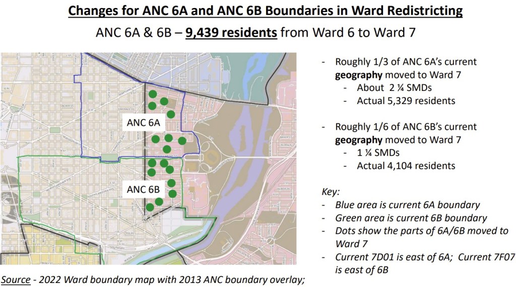 If no new ANC made up of the pieces of ANCs west of the river comes into being, those pieces of ANC6A and ANC6B which recently became part of Ward 7 through redistricting will have to be absorbed into Ward 7’s ANC7D and ANC7F.