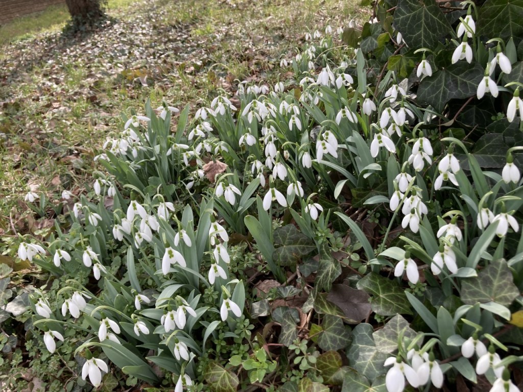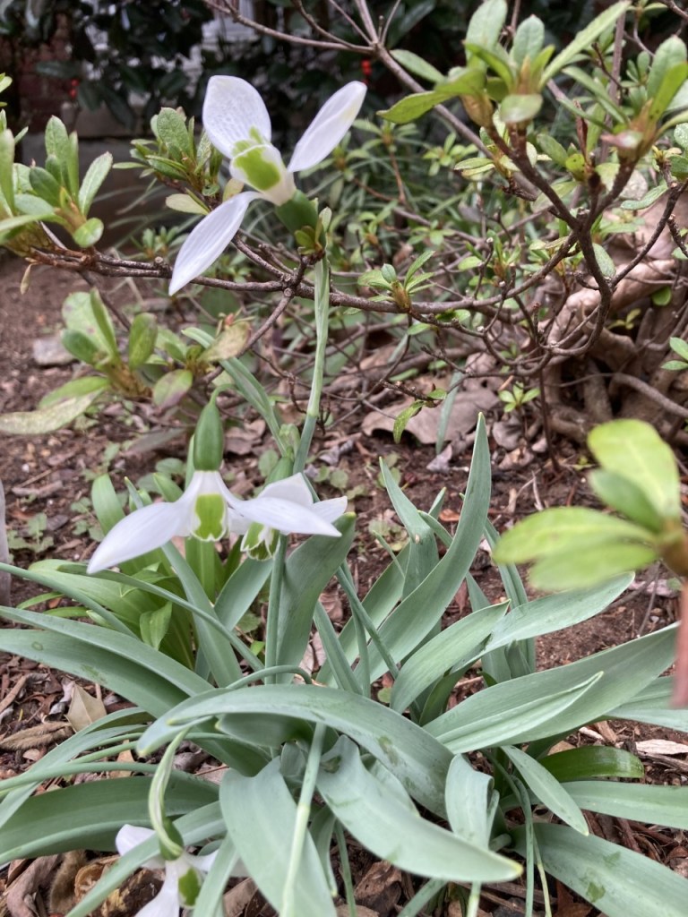 In February tiny white blooms with green markings start poking up through snow – snowdrops, the harbingers of spring. Plants propagate from seed and offsets – new bulbs that grow attached to the mother bulb. It’s a slow process, and these new bulbs need a year or two before they bloom. Snowdrops became quite fashionable in the 1800s in England and bulbs sold for thousands of pounds. Recently a British breeder paid several thousand pounds for a rare species (white with large yellow dots) but offspring from that bulb have not yet been on the market. Modern techniques like “chipping” (dividing mature bulbs into as many as 16 pieces) produce reasonably priced bulbs. A similar technique is used to propagate orchids, bringing the price down to fit Trader Joe budgets. Snowdrops can be found in shady spots all over the world. This clump is located on Bay Street, SE.