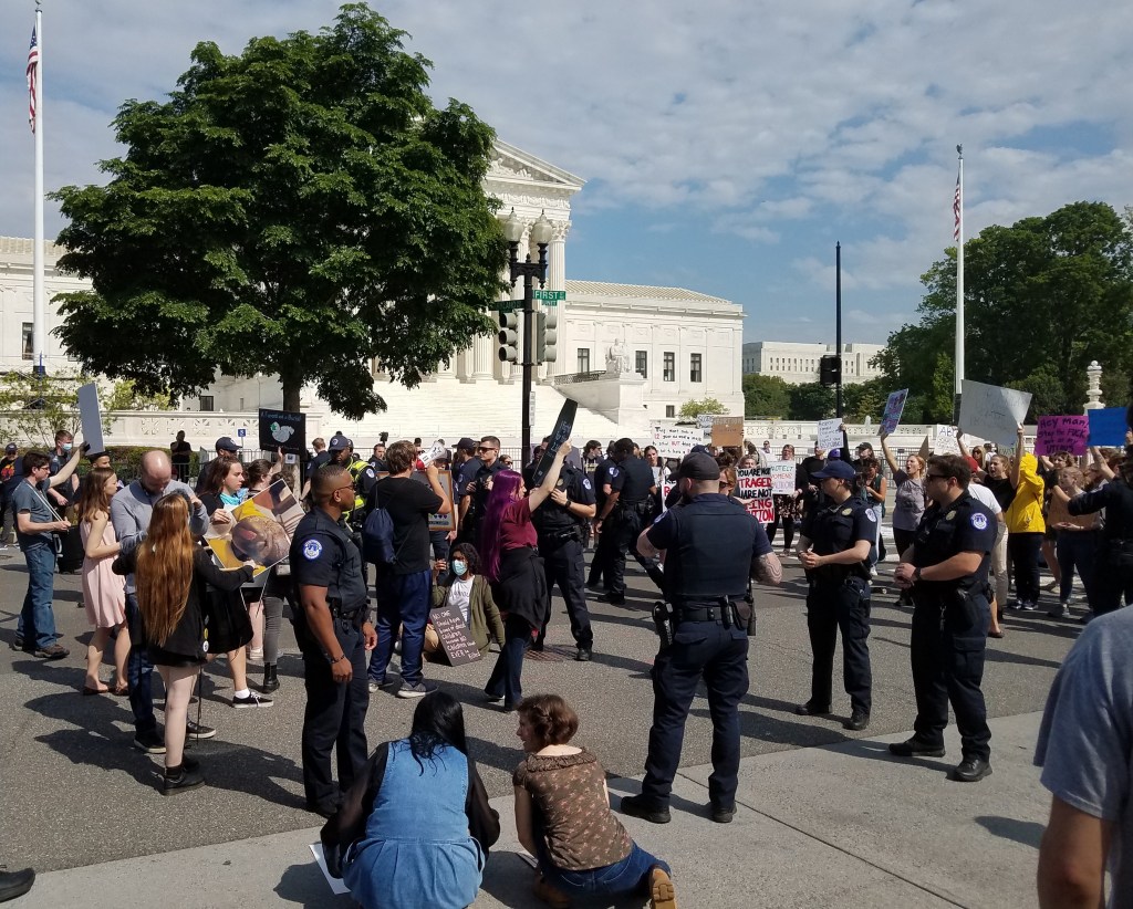 Politico posted a leaked draft of the Supreme Court’s majority opinion on Roe vs. Wade on Monday, May 2. Predictably, crowds on both sides of the issue gathered in front of the Supreme Court. The US Capitol Police closed First Street between Constitution and Independence as well as Second Street behind the court. By Thursday morning, an 8 foot unscalable fence had been erected all the way around the building. Here are some photos from Wednesday and Sunday.