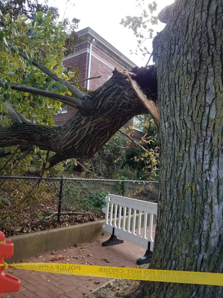 And speaking of the Capitol Hill Arts Workshop, CHC is chagrined at not noting before the upgrade to the façade at 545 7th Street, SE.The week ahead is the last week for Biker Barre, one of the earliest barre studios on Capitol Hill, as the owner pursues other opportunities. A close call for SE Library. Friday, the behemoth Linden tree at the corner of 7th and D Street, SE, lost one of its major branches – most of the limb is lying on the grounds of SE Library. The city’s Ward 8 Arborist, Carlson Klapthor happened by on Sunday afternoon and said the tree had been hollowed out – evidenced by the cavity inside the fallen branch. He thought the tree would have to be removed. “The tree was likely killed by sidewalk work,” he said, noting that the adjoining sidewalk was “flat as a pancake,” and alluding to the removal of roots. Surveying the tree, Klapthor said it had had a history of failure – the top was “blown out” and many dead or diseased branches had been pruned. The tree’s presumptive and preemptive removal would be in keeping with its fate; construction on the $23 million renovation of SE Library is scheduled to start next year and anticipates the tree’s removal. For more on DC Urban Forestry, go here: https://trees.dc.gov/pages/tree-services