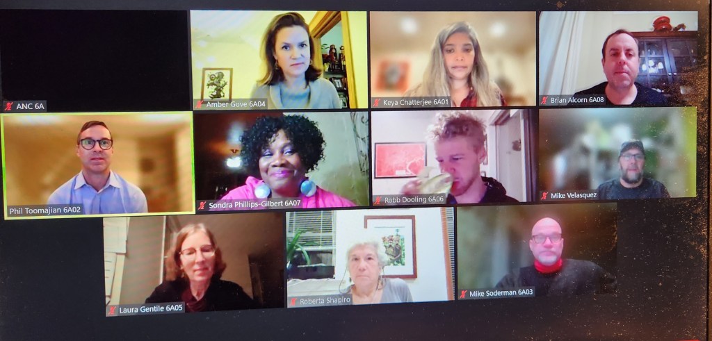 Last Thursday was the last meeting of the current members of ANC6A. The business of the commission was routine and was followed by commissioner comments on the accomplishments of the commission and expressions of thanks from Chair Amber Gove. When the Commission convenes in January 2023, it will be a 7 members commission (down one seat from the current 8, owing to redistricting) and will be comprised of ANC6A01 Keya Chatterjee, 6A02 Mike Velasquez, 6A03 Roberta Shapiro, 6A04 Amber Gove, 643, 6A05 Laura Gentile, 6A06 Robb Dooling, and 6A07 Stephen Moilanen.