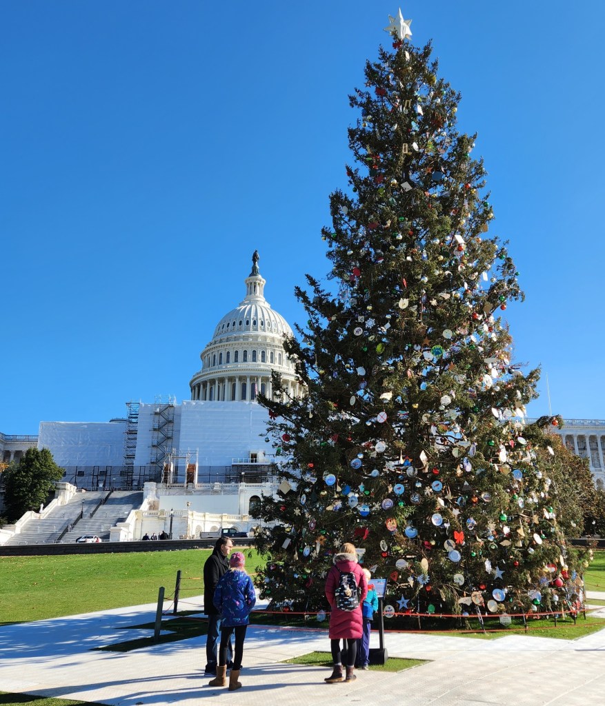 Across the way, here’s a shot of the Capitol Christmas Tree. This year’s tree is a 78 foot red spruce from North Carolina. Nicknamed “Ruby” the tree is decorated – according to tradition – with handmade ornaments from residents of North Carolina.