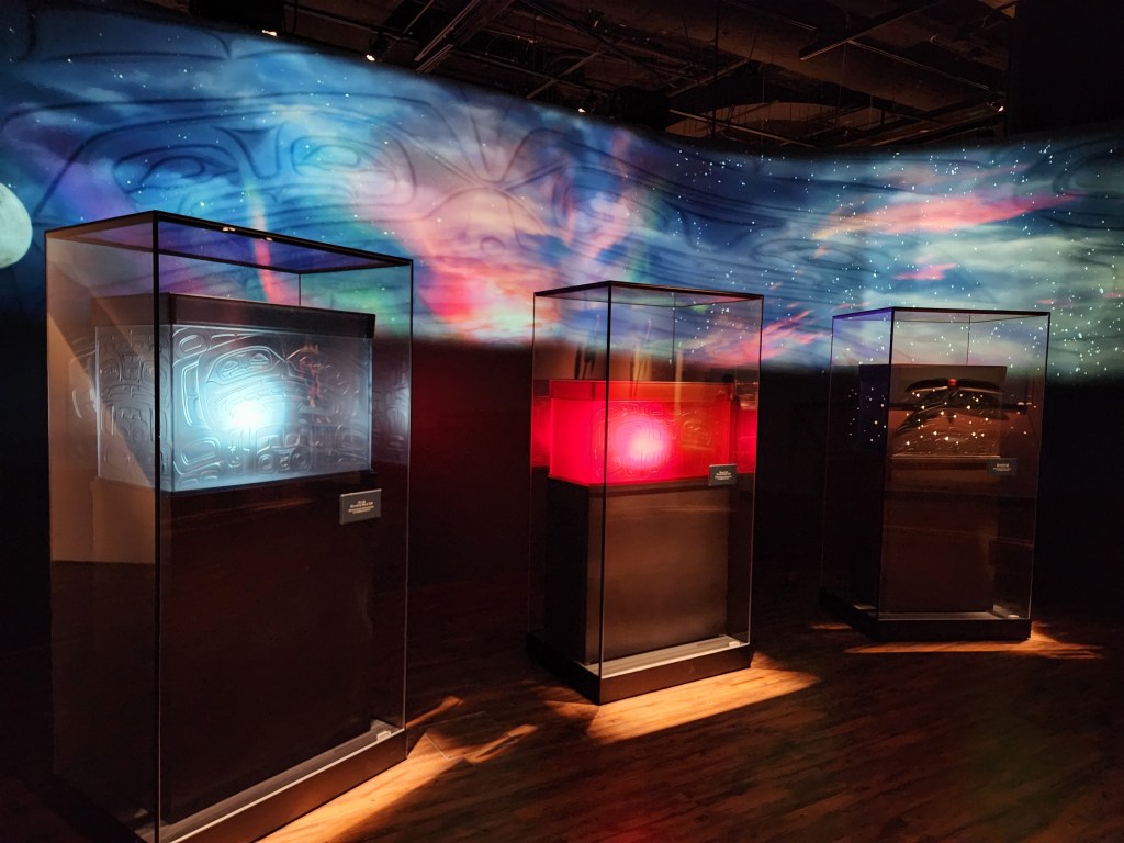 The National Museum of the American Indian is exhibiting “Raven and the Box of Daylight.” The museum describes it as “an immersive, multisensory experience” which tells a creation story – the story of the transformation of darkness to light.