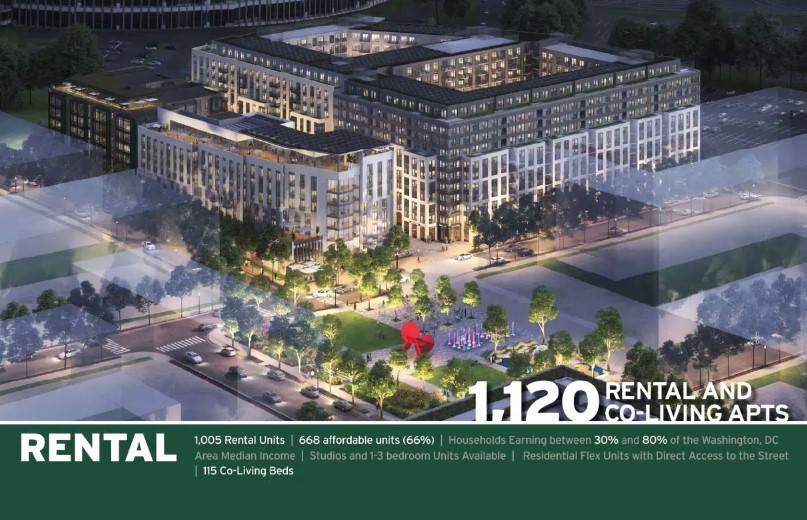 Phase 1 – two apartment buildings, retail and infrastructure near RFK is scheduled to break ground in the spring of 2024.