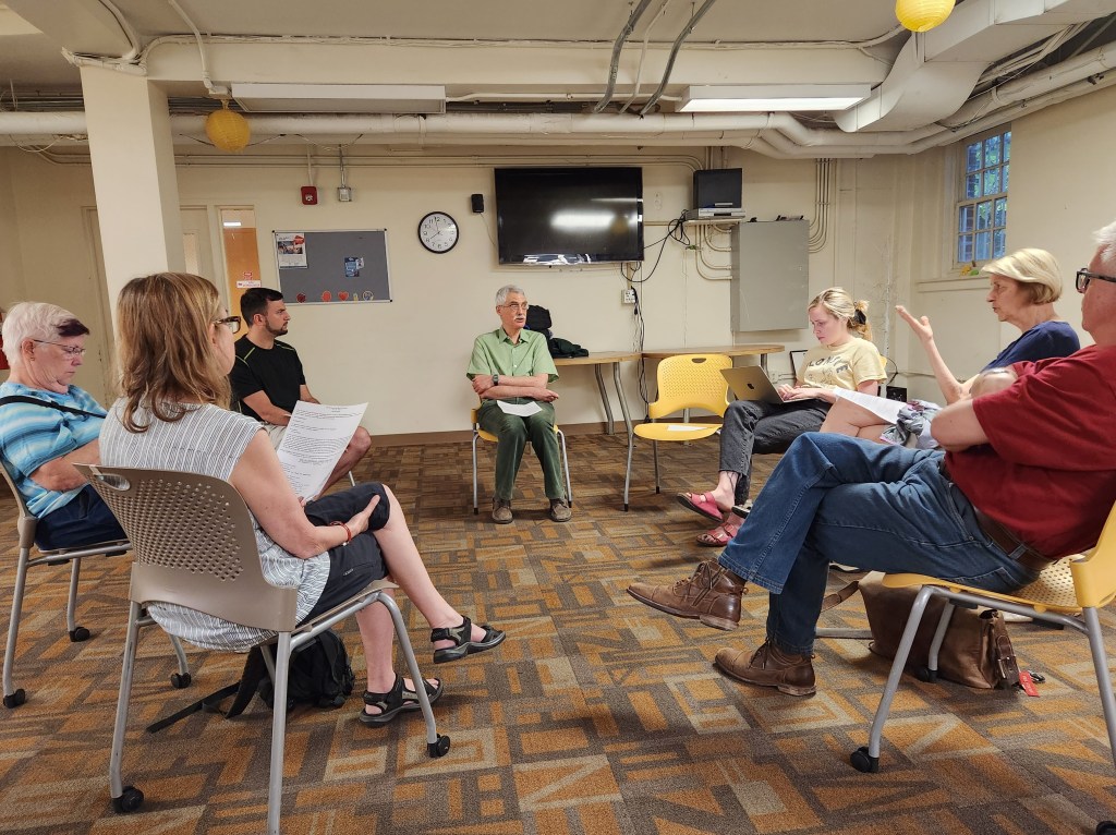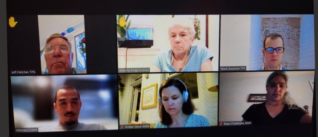 Last Tuesday night, ANC6B Parks and Public Spaces Committee met. Committee Chair Commissioner Jerry Sroufe announced Resident Member Eileen Dougherty’s appointment as Vice Chair. (Photo from the May meeting of the Committee – Sroufe is at left, Dougherty is center, front). Commissioner Frank Avery is at right.