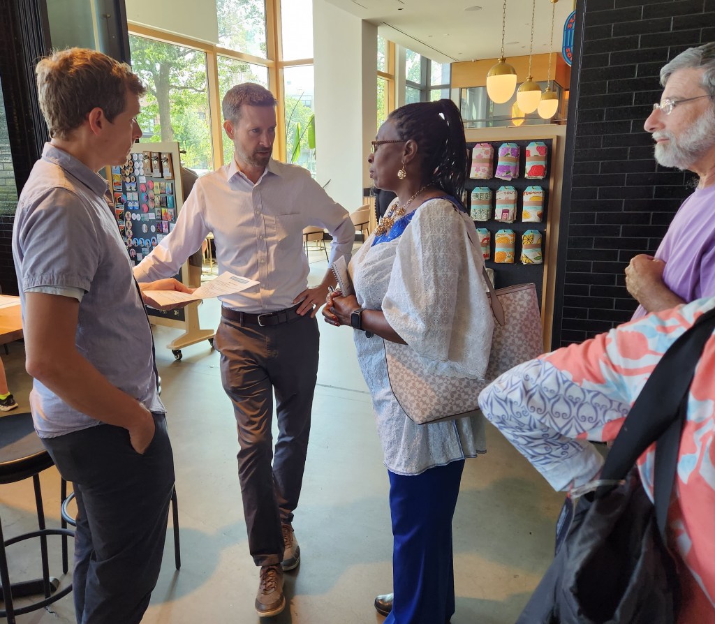 Last Wednesday’s meeting of the Eastern Market Community Advisory Committee. Left to right: Robyn Hinson-Jones, Capitol Hill Village; Jackie Krieger, Mayor Bowser’s Representative and Vice Chair of EMCAC; Nikki Dean, Nonfood Vendors Representative; Chuck Burger, CHAMPS Representative and Chair of EMCAC; Gerry Sroufe, ANC6B; Brian Pate, Council Member Allen’s Representative.