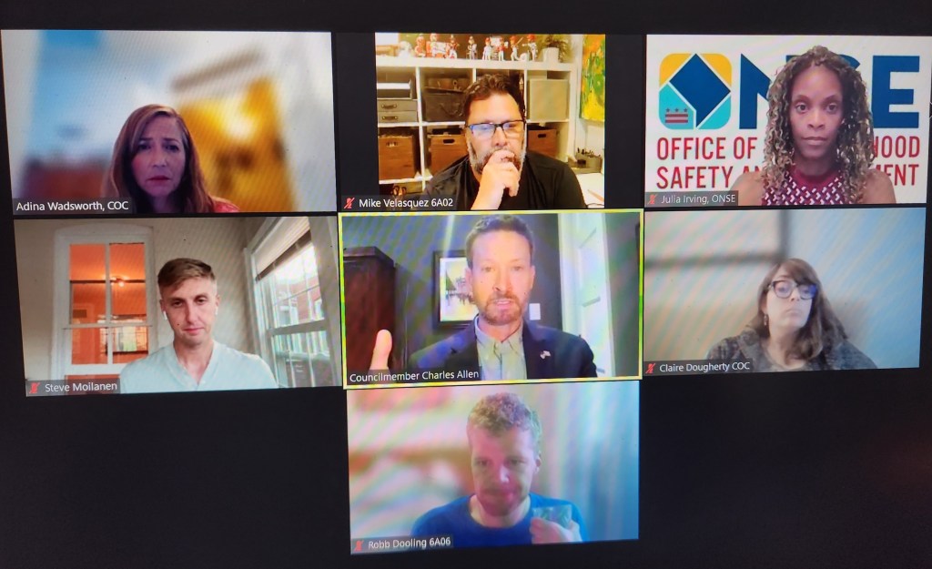 ANC6A Public Safety Meeting. CM Charles Allen participated in the ANC6A Community Outreach Committee Public Safety Meeting last Monday. He told the some 50 participants in the virtual meeting that his three main areas of concern are the violent crimes involving gun violence, armed robbery across the DC area, and auto thefts and carjackings.