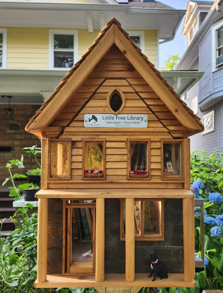 Bob Gellman from Friends of Southeast Library (FOSEL) has created a list of 160 Little Free Libraries – locations he collected while walking on Capitol Hill. One that’s not on his list is on Decater Street in Petworth that replicates the owners’ house and goes the extra mile…