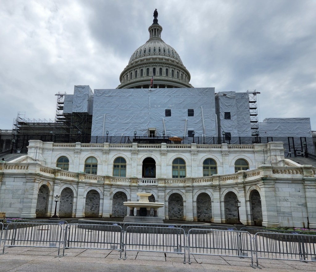 Here’s the grandstand for “A Capitol Fourth,” with the National Symphony Orchestra as it appeared Monday morning on the West Front of the US Capitol. Grounds open at 3:00pm, Tuesday – music starts at 8:00pm – fireworks at 9:06pm. Among the featured talent: Boys II Men, country duo Maddie and Tae, opera star Renee Fleming, R&R Hall of Famer Belinda Carlisle, and others.