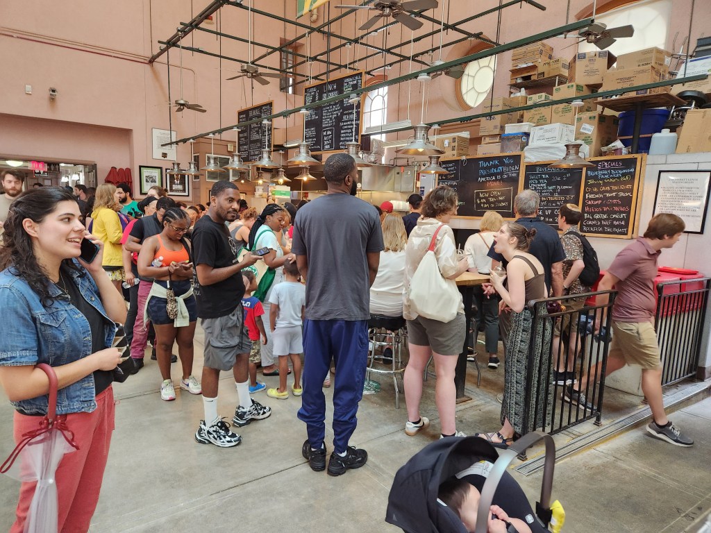 Eastern Market Lunch, circa 11:00am, draws a mid-July Sunday morning crowd.