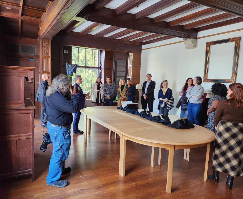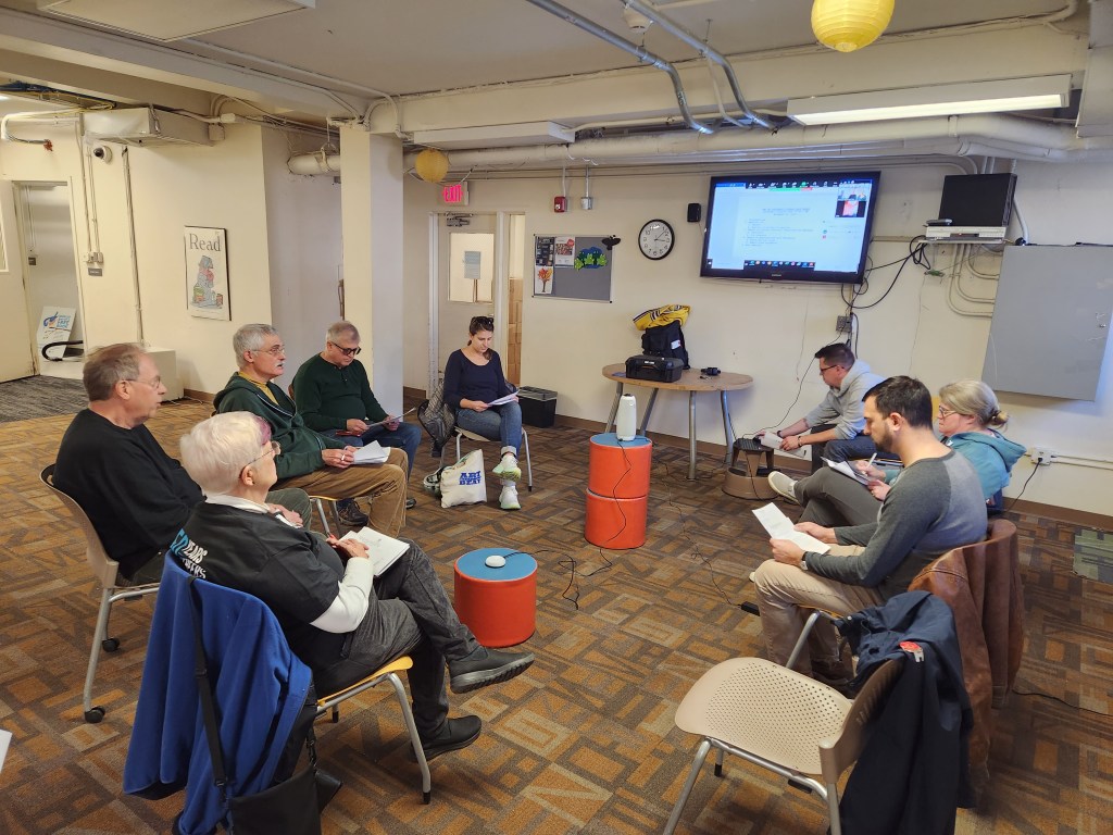 ANC6B’s Southeast Library Task Force met Sunday afternoon, chaired by Commissioner David Sobelsohn (center left). The Task Force discussed DC LibraryExecutive Director Richard Reyes-Gavilan’s response to a letter from ANC6B concerning the operation and facilities which will be provided at an interim library services site at the Arthur Capper Recreation Center duing the SE Library renovation. Commissioner Frank” D’Andrea moved to authorize Chair Sobelsohn to draft a letter for consideration by the full ANC seeking clarification on some issues which are still unclear, especially regarding the services available at the interim site and the hours which the interim site will be open to library patrons. This was the groups first use of the new hybrid meeting system, simultaneously in-person and virtual, utilizing “Meeting Owl” – a 360-degree camera, mic, and speaker device (shown in the middle of the meeting) that captures a panoramic view of surroundings and allows remote viewers to see all participants. The Task Force will next meet on Sunday, December 3 at 3:00pm at 700 Pennsylvania Avenue, SE, 2nd Floor.