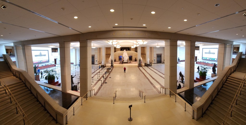 The Hall is where you line up for passes for tours of the Capitol. On-line reservations are advised, but some same-day tour tickets are available. There were few visitors last week. CHC asked why, and was told, “It’s January.”