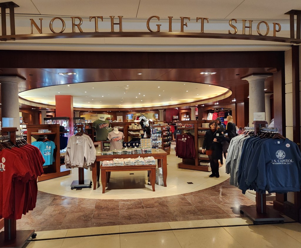 Here’s a view of one of the Center’s two gift shops for gifts, jewelry, books and items bearing images related to the U.S. Capitol.